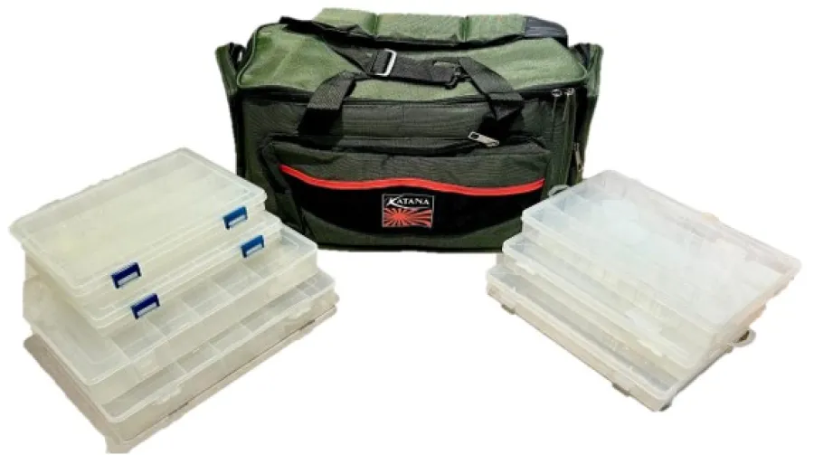 Bolso de pesca Katana LW-O 2404Medidas del bolso 48 x 26 x 29 CM 3 bolsillos grandes 3 ordenadores E-002 28 x 18 x 4 CM 2 ordenadores E-001 25 x 18 x 4 CM 2 ordenadores E-003 32 x 21,5 x 5 CM
