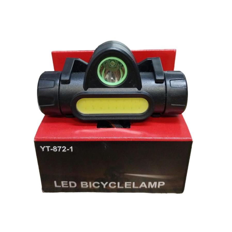 Carga por USB. Fuerte imán. Resistente al agua.Modelo: YT-872-1Lámpara para bicicleta + Linterna frontal de doble usoXPE+COB BombillaBatería 18650Voltaje: 3.7V 1200mA