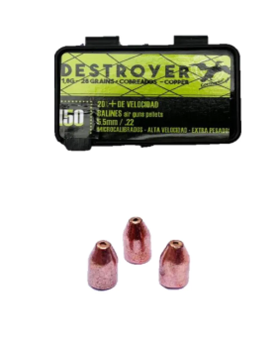 1,8 Gr. Cobreados seleccionados. Micro calibrados. Alta velocidad. Extra pesado. Ideal para caza con rifles de gran potencia de nitro y PCP.
