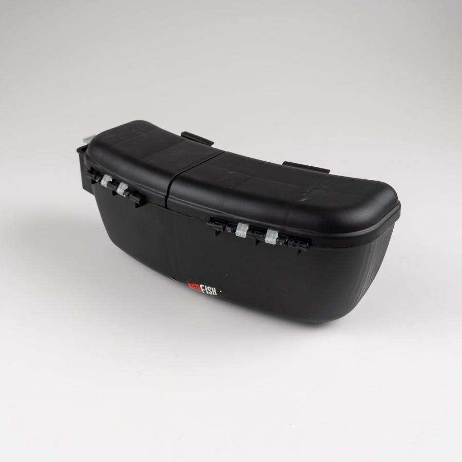 Porta carnada tipo riñonera, con cinto, dos compartimentos ( uno para carnada y otro para señuelos) y reparticiones en tapa ideal para anzuelos , mosquetones ,etc.
